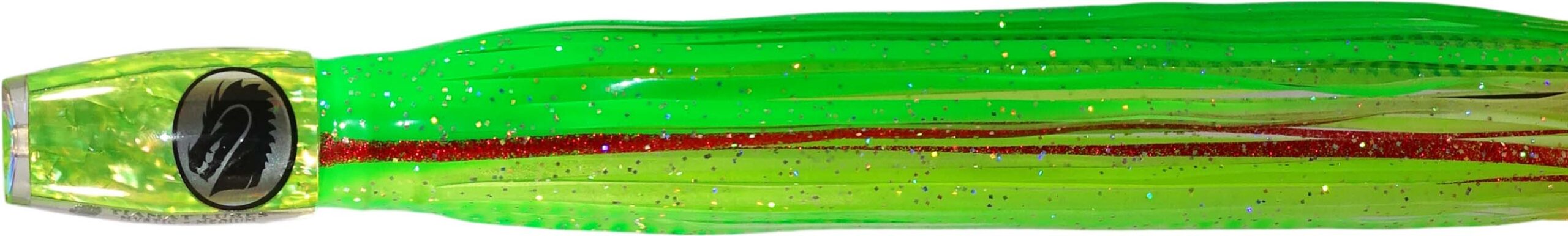 It is recommended that you use a variety of skirt colour schemes in your trolling pattern. For example, a good starting point is trolling a lure skirted with a dark colour scheme such as a Blackened, Black Dog or Godspeed. Then develop your pattern with the inclusions of the various shades of pink, green, blue and purple. But don’t limit yourself to that as the Moko and Wolf variations are incredibly productive too. The Hot Loomo schemes have also been outstanding. Unorthodox schemes such as Evil Bert, Lucky Banana and Hawaiian Elvis are also consistent big strike producers.