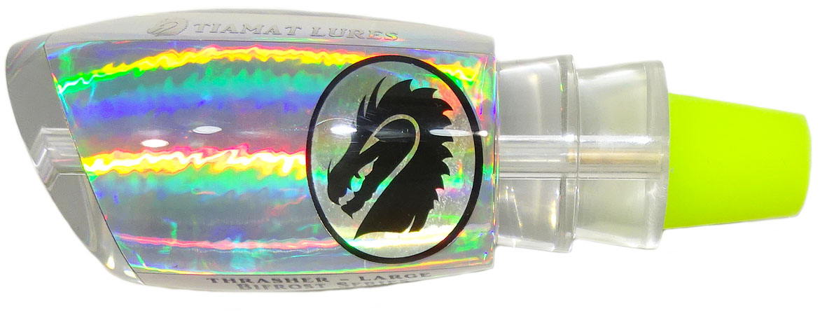 The Thrasher is available in 3 sizes, in all 5 head designs shown below including the new luminescent Awabi shell and in all 50+ of the TIAMAT Lures skirt colour scheme combinations which feature the exclusive UV-NexGen technology.