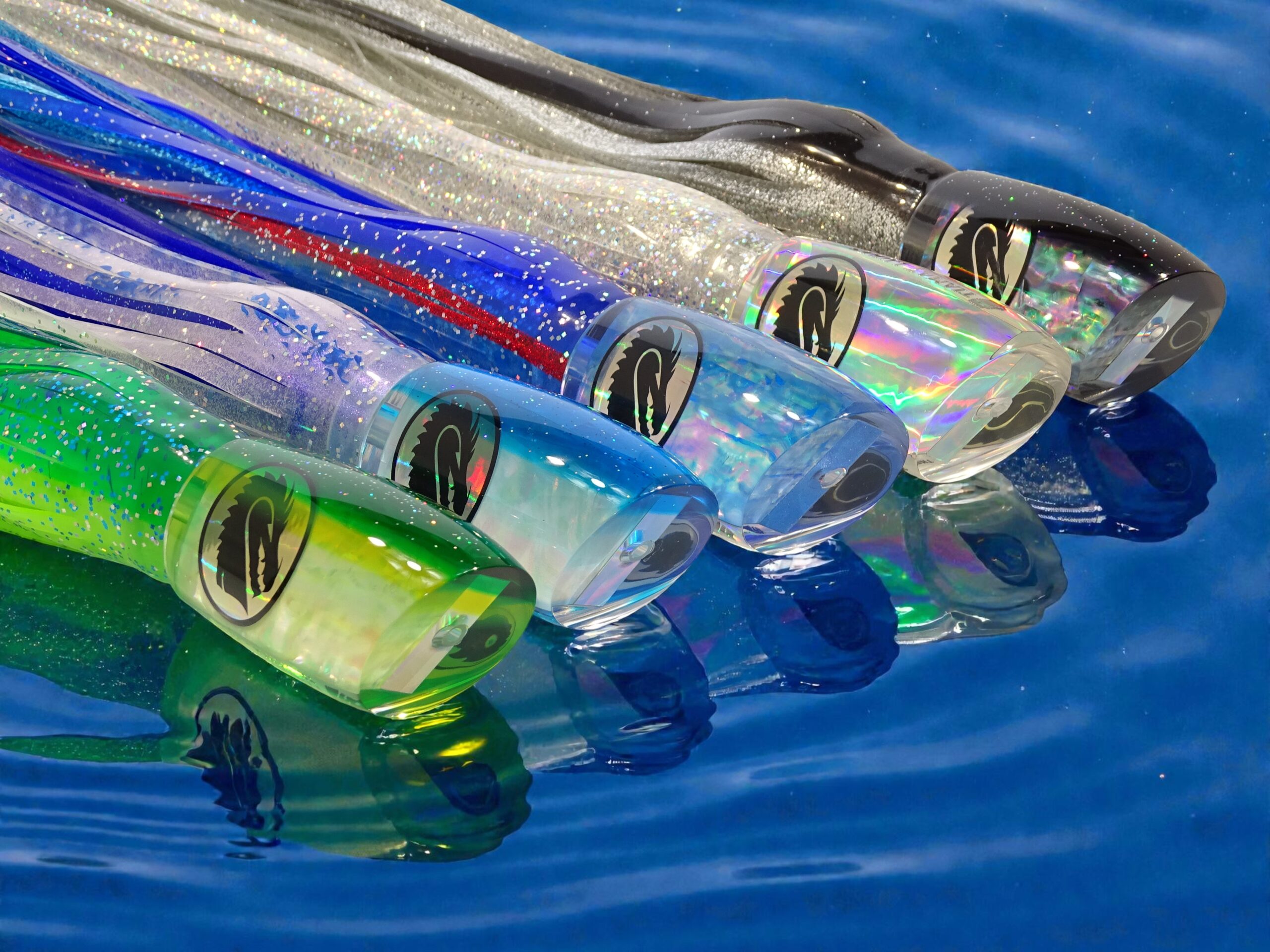 The Thrasher is a heavily keeled weighted tapered skirted trolling lure with a front angle that is often referred to as a “hard cut”. Most lures have a 80 degree+ face, while the Thrasher is less than 70 degrees. The result is a highly active lure that draws the immediate attention of gamefish.